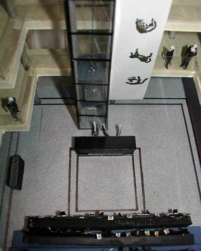 der Blick der Zuschauer, vorbei an viel kühlem Metall und nüchternem